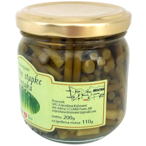Pickled garlic stalks produced by family farm Zvijezdana Križmanić from Veli Ježenj. You can eat pickled garlic stalks as a side dish or in salads or chop them finely and add them to meatballs or sauces.